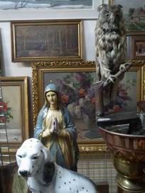 A także wystawa sklepowa punktu, gdzie możesz kupić rzeźbę pieska, wypchaną sowę i rzeźbą Matki Boskiej. Wszystko zestawione w jednym miejscu.