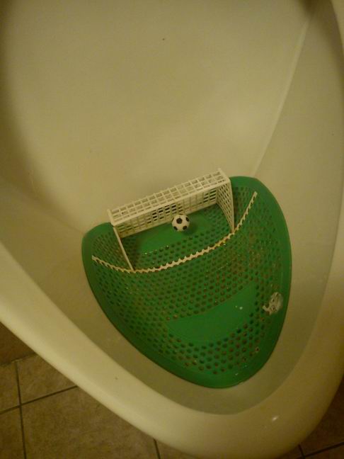 Kolejna wersja pisuaru, tym razem umożliwia grę w piłkę.