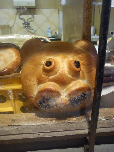 Oraz kolejna wystawa sklepowa, tym razem ze świnką z chleba.