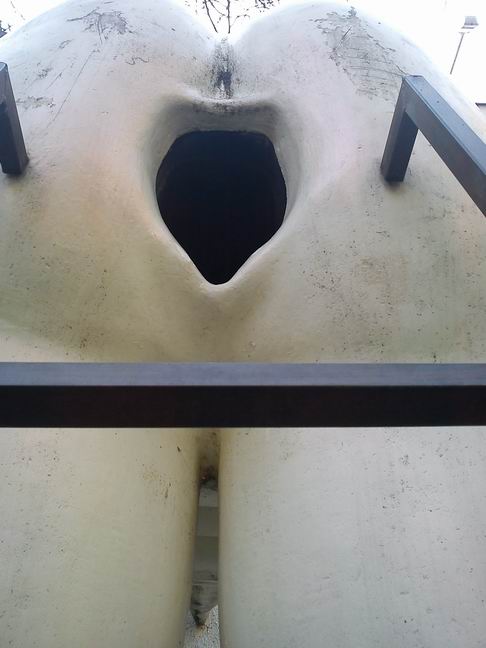 Rzeźba Dawida Czernego z możliwością zajrzenia w tyłek dużej postaci przypominającej człowieka. W środku telewizor przez który można obejrzeć „rozmowę” dwóch osób, których artysta bardzo nie lubi (po szczegóły zapraszam do Czech:) ).