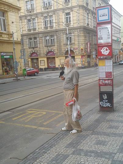 Staromestske namesti: najprawdopodobniej wieczór kawalerski – przylepienie kolegi do słupa. Reakcje ludzi były różnorodne. Poszkodowany w ciągu pół godziny mógł się napić darmowego piwa od przechodniów, zapalić cygaro, być ucałowanym przez turystki, a także zarobić trochę drobnych. Negatywnych reakcji nie zanotowano.