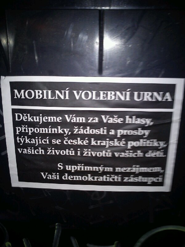 Dziękujemy Państwu za Wasze głosy, upomnienia, żądania i prośby dotyczące czeskiej polityki wojewódzkiej, Państwa codziennego życia, a także Waszych dzieci”